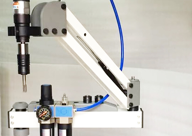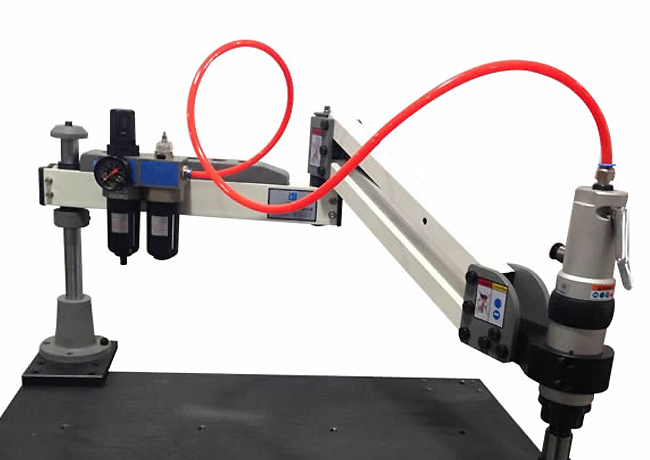 本機采用壓縮空氣驅動,安全快速高效;較小氣壓力和氣量(0.6-0.8mpa),超大扭力輸出;.能對各種鋼材、鐵、銅、鋁、塑料等材料攻絲;筒夾帶過載保護裝置,絲攻損傷較少,螺牙精度高;操作簡單輕便,完全不需要經驗和技術。